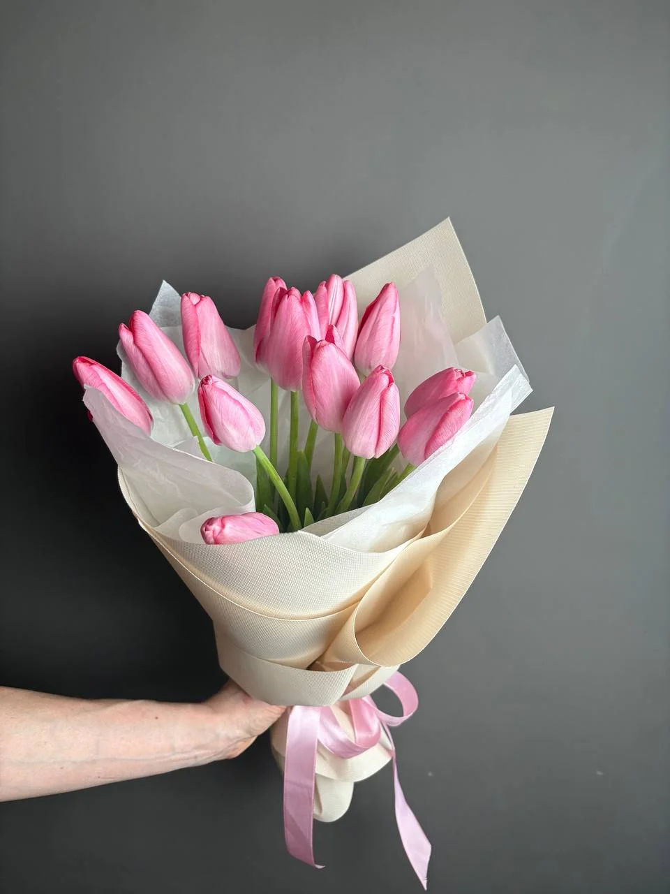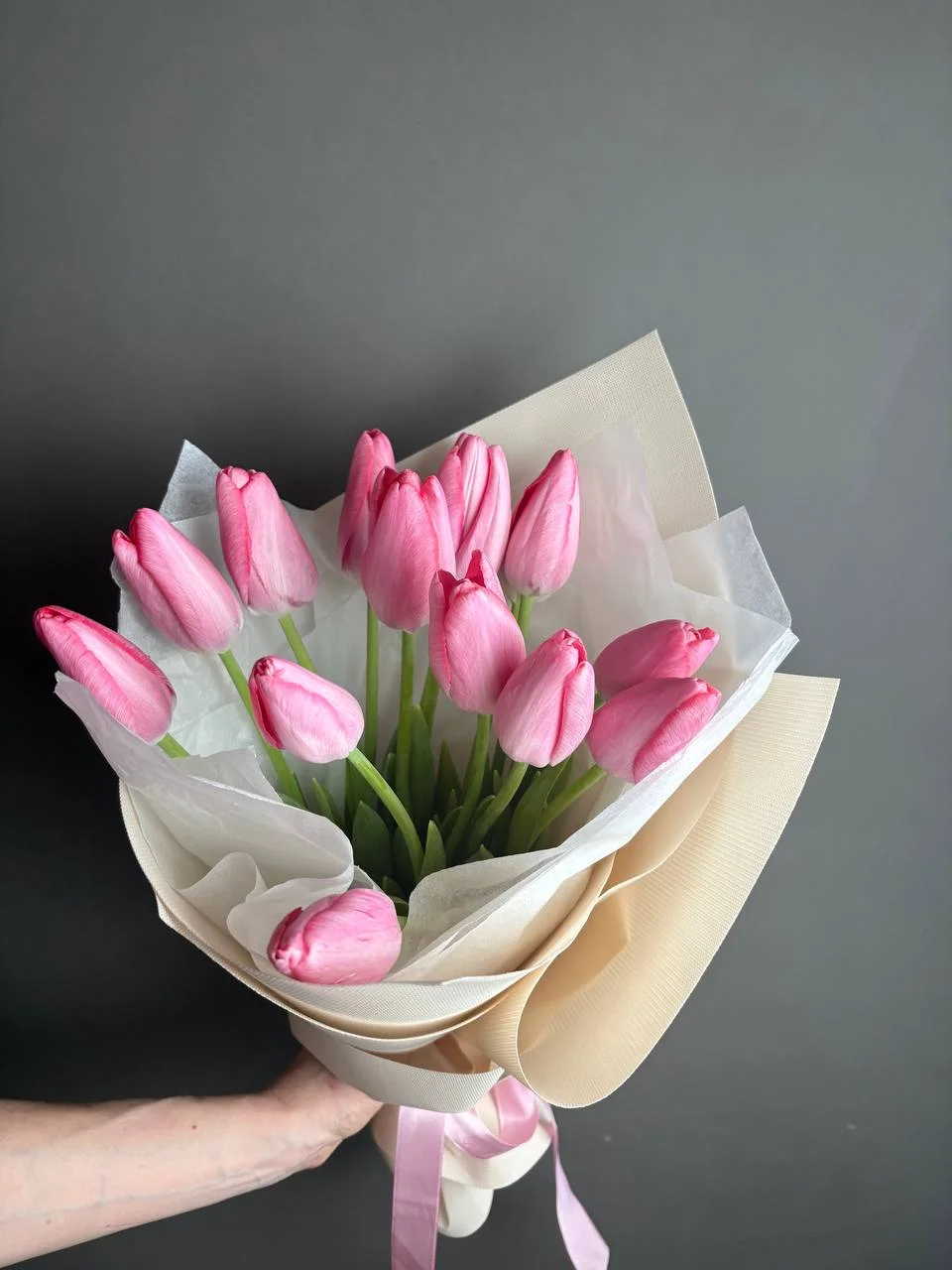 13 розовых французких тюльпанов