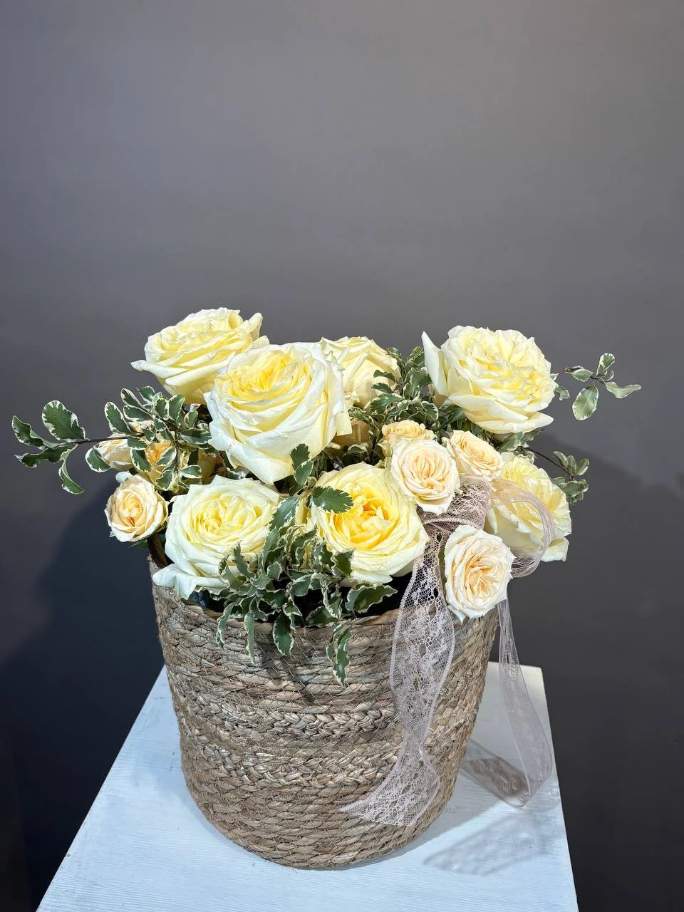 Корзина с пионовидными розами