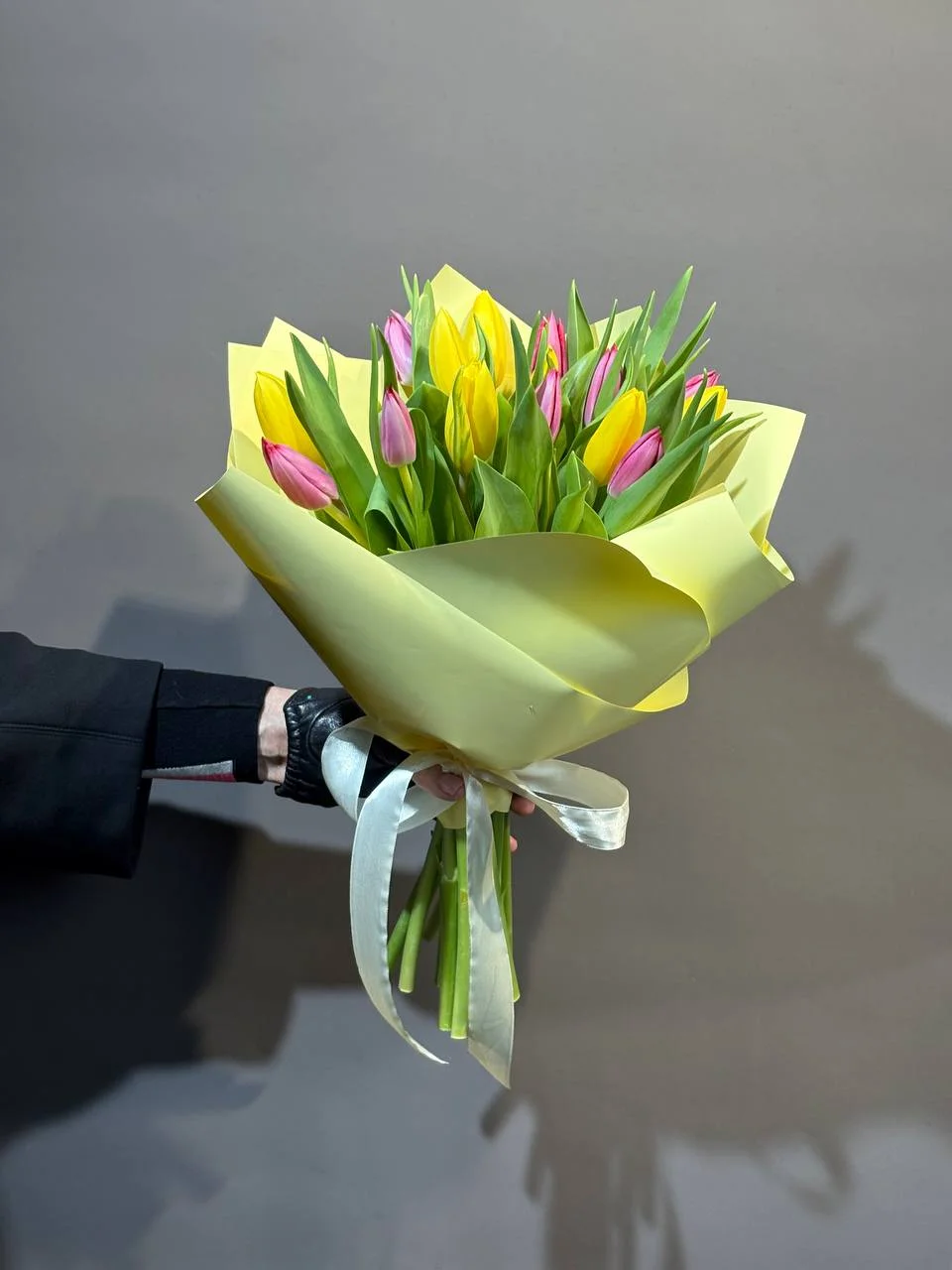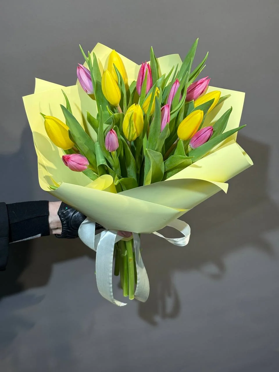 Моно букет из разноцветных тюльпанов