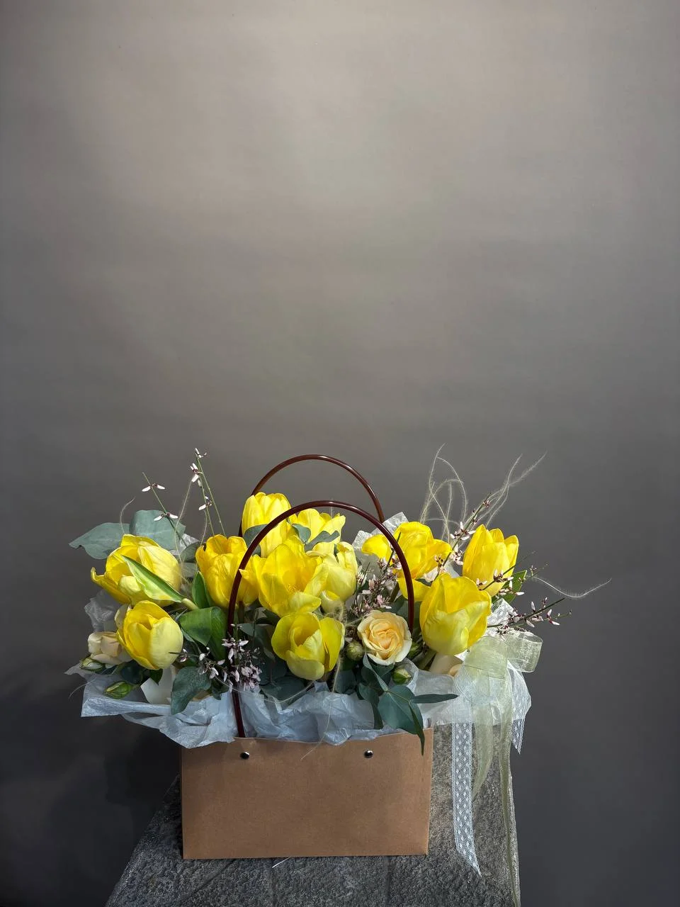 Композиция с желтыми тюльпанами